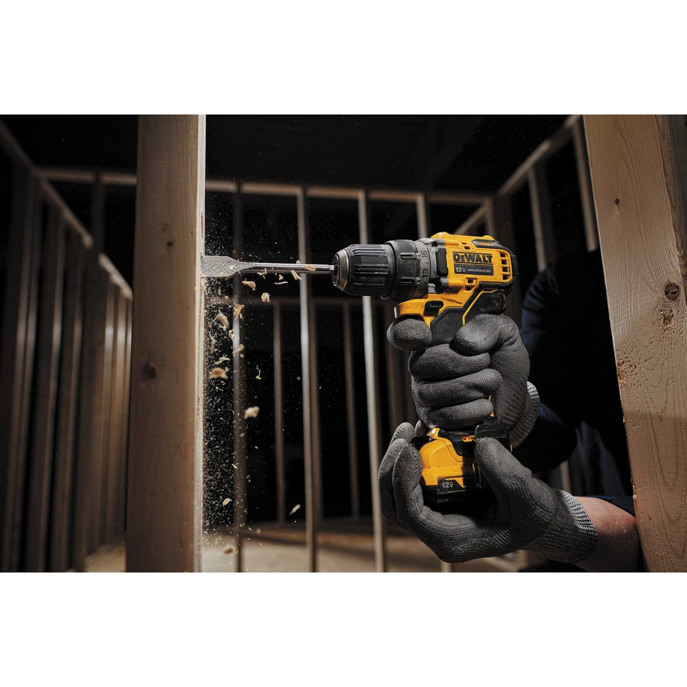 - Includes DCD701B 12V MAX Brushless 3/8 in. Drill Driver and a belt clip