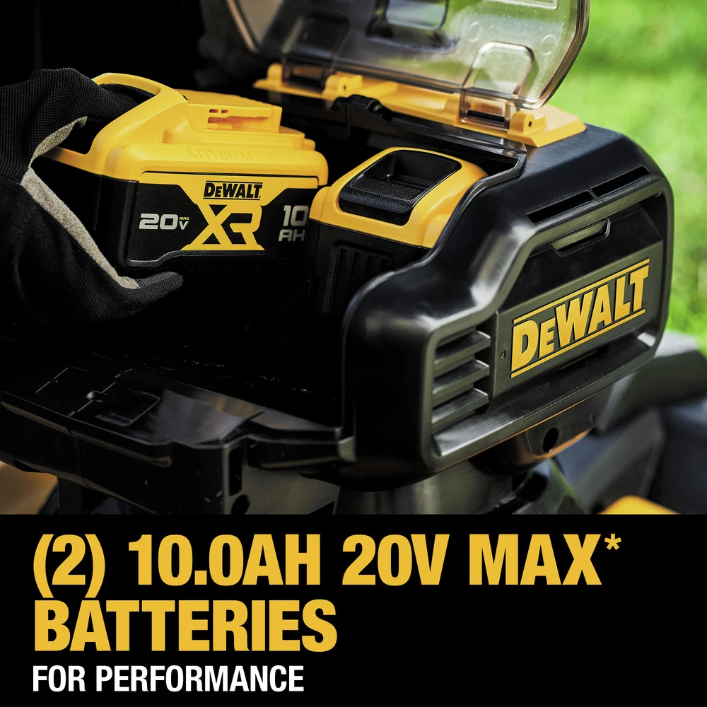 - UP TO 60 MINUTES OF RUNTIME per charge using (2) DEWALT 20V MAX DCB210 10 Ah batteries
