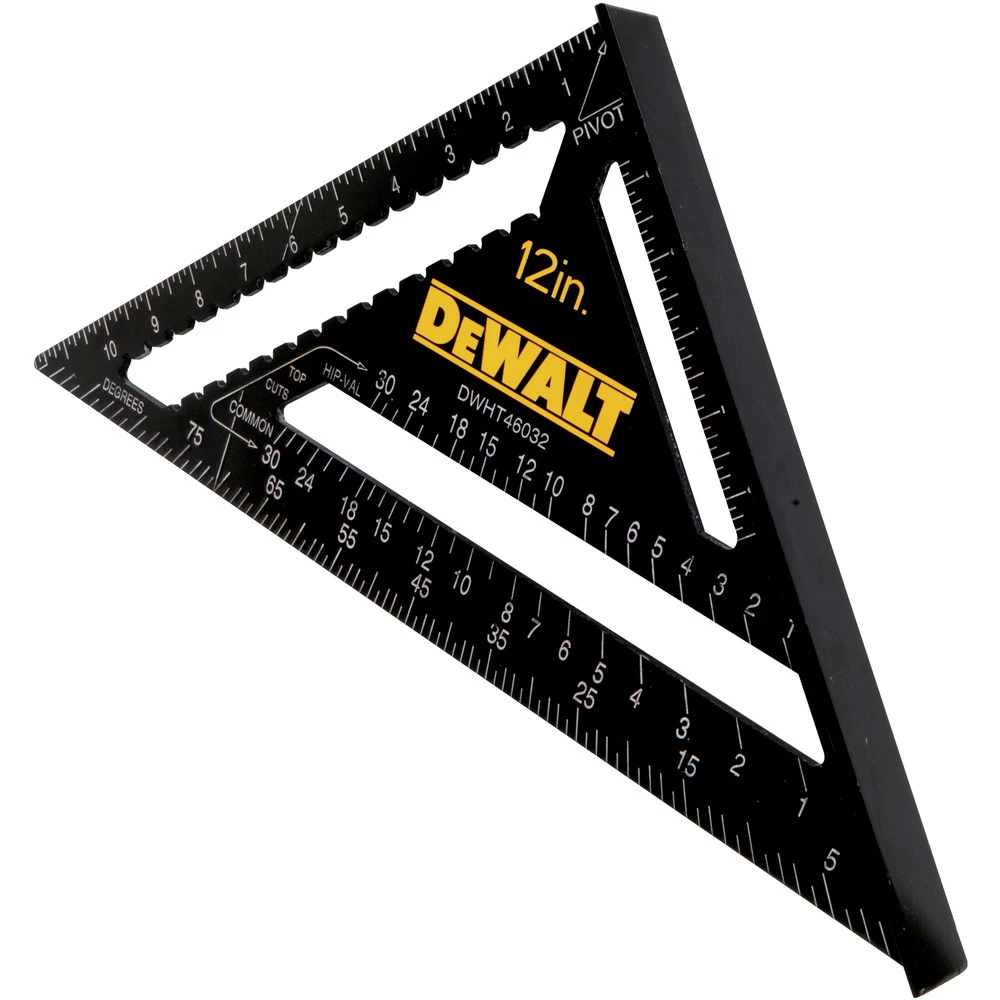 DeWalt Premium Rafter Squares provide clear and precise measurement readings with stamped-in contrasting color graduations for better readability. The thick aluminum construction ensures a long lasting tool ready for years of service.