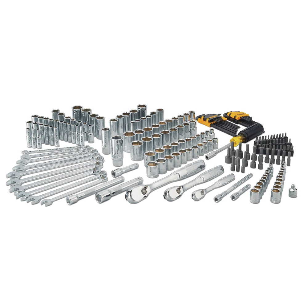 This 205-Piece Mechanics Tool Set includes the ratchets and sockets you need for almost any mechanical job. It also comes with a bit driver, specialty and nut bits, combination wrenches, and hex keys. The set comes in a durable blow molded case with metal latches for security. This set of tools is built to meet the demands of hard-working professionals with a full-polish finish that provides corrosion resistance.